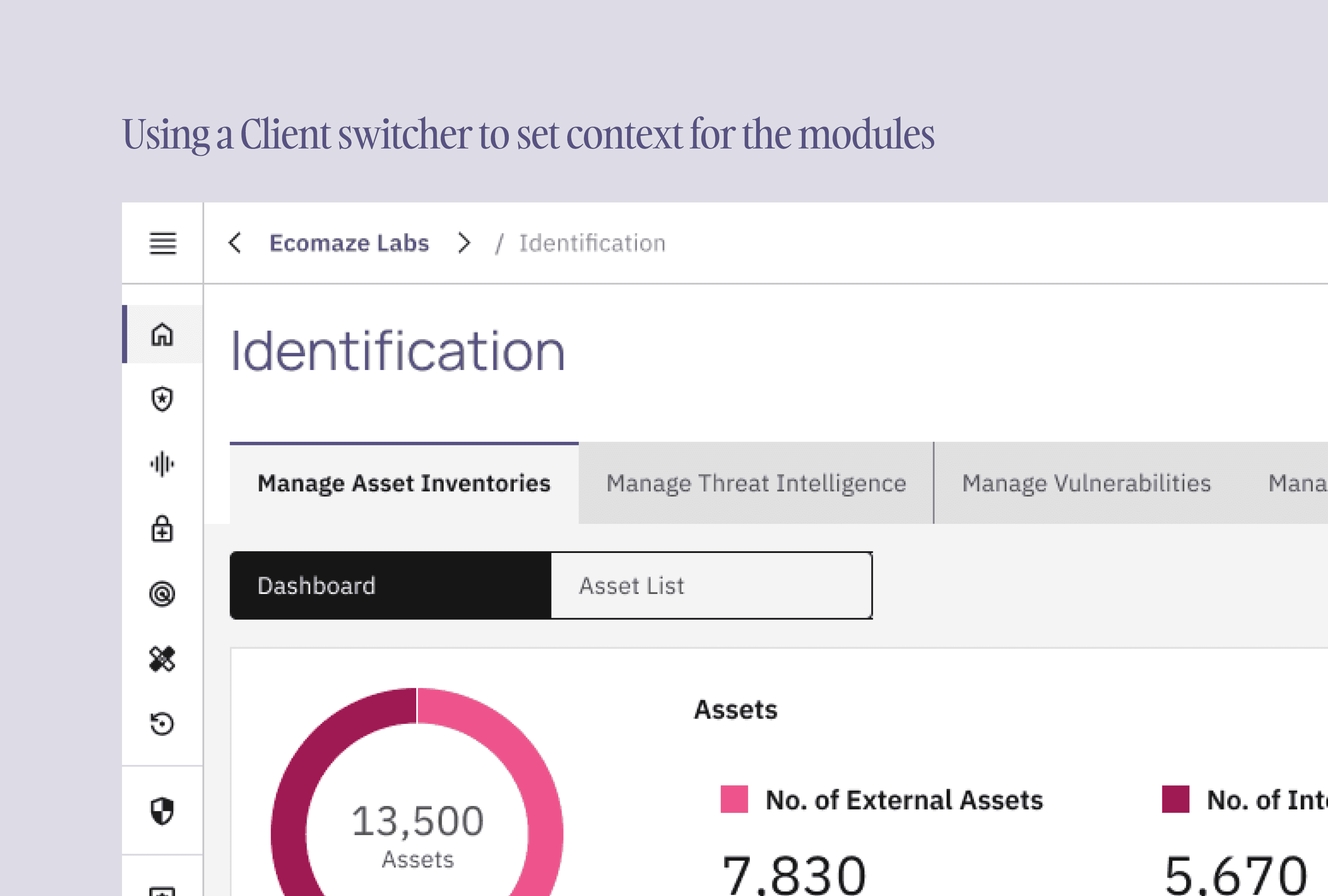 Their vision: build a SIEM that reduces cognitive load by design, automates repetitive analyst tasks, and structures the entire product around the NIST Cybersecurity Framework, making it both more usable and more defensible to enterprise buyers from day one. The MVP had to serve two roles with fundamentally different needs: a Super Admin managing the platform, and an Analyst working within it, always in the context of a specific client.